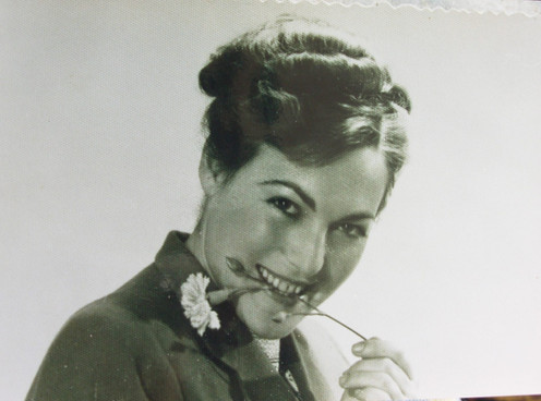 צילה רון בצעירותה; צילה ואברהם רון עם בנם, בביקור בנתיבות (עומדת לידה דניאלה מלר), 1963