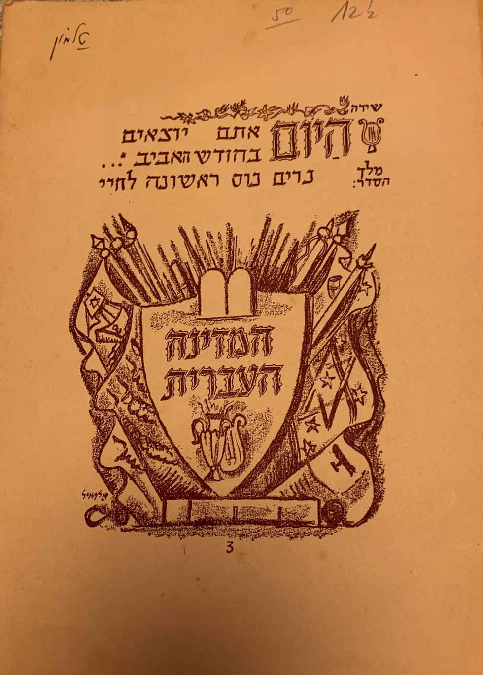 נחתום ברישומים שיצר האומן אריה אלואיל (1901–1967) לחג החירות תש"ח: פרקים למסיבות פסח; שימו לב למגוון הסמלים: מגן דוד, לוחות הברית, שופר, פך השמן, ירושלים ו... משוריין. בין הלוחמים ניצבת גם לוחמת אחת, ובגיבורי ישראל מופיעה דבורה הנביאה. בהערותיו הציע האומן להוסיף עוד נשים: את יהודית ואת אסתר. הוא גם מציג את לוחם הגטו במקביל ללוחם התקומה.