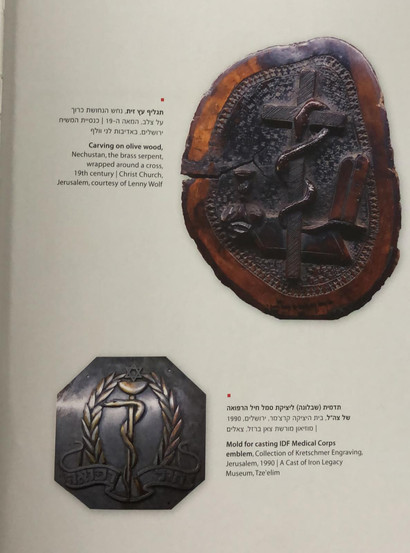 בשנת 2014 הוצגה במוזאון מגדל דוד התערוכה "ירושלים: גיליון רפואי", שאצרה ידידתי נירית שלו־כליפא. בשל בקיאותי בתולדות חייו של ד"ר מזיא השתתפתי בתערוכה. בתערוכה הוצגו, בין השאר, כלים מעוטרים בסמל הנחש.* באותו זמן התבקשה אביגיל בתי – אז בת תשע – לכתוב חיבור על אתר מעניין ובחרה במגדל דוד. בחיבורה היא סיפרה גם על התערוכה, וכך היא כתבה: "אחד הנושאים שעניינו אותי במיוחד היה הנחש כסמל. הנחש הוא גם סמל לרע וגם סמל של רפואה בהשפעת הסיפור על 'נחש הנחושת' שריפא את בני ישראל במדבר. ראיתי אותו בכל מיני סמלים של רופאים, של ארגוני רפואה", נדמה לי שאבא שלי – סבא שלה – היה שמח לקרוא את זה...