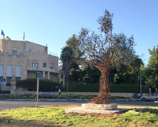 ובשכונת טלביה בירושלים ניצב לו עץ זית שגזעו ברזל ועליו – נחושת. את הפסל "חלום עץ הזית" יצרו האומנים רות הורם היהודייה וניאהד דביט הערבי מרמלה. העץ משתלב היטב בסביבה עד שחולפים לידו ואין מבחינים בייחודו. יש לי בבית ענף אחד מהעץ – קניתי אותו אצל ניאהד בסטודיו המיוחד שלו ברמלה. לשם הזדמנתי בדרך מקרה – אני ממליצה מאוד לבקר שם.